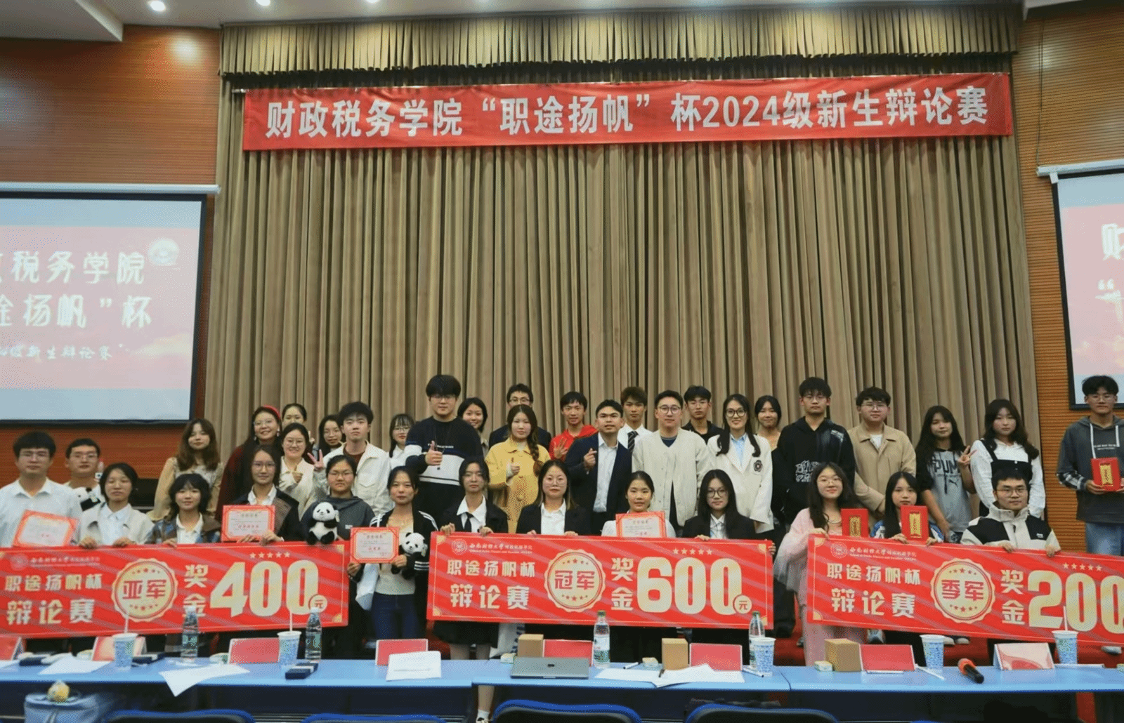 最后,二班辩论队以更默契的团队配合和更缜密犀利的发言,成功斩获本次辩论赛的殊荣!三班辩论队荣获亚军,四班辩论队获得季军,一班辩论队也获得了本次比赛的优秀奖!此外,杨稀璟荣获最佳辩手,段一格荣获人气辩手,同时评选出了四名优秀辩手。