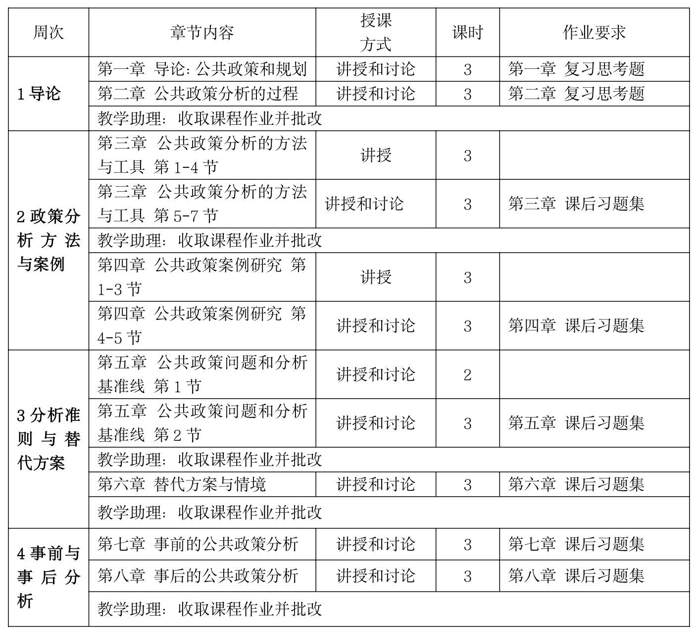 1.帮助学生掌握公共政策分析或政策科学的基本概念、理论和方法以及分析技术,使学生对公共政策分析具有总体认识和整体把握。