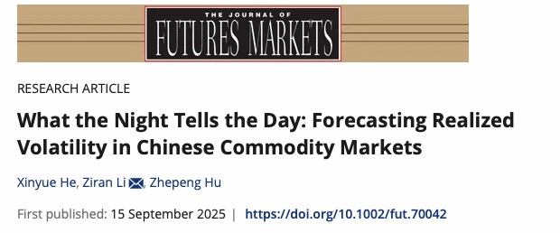 我院李子燃副教授的合著论文“What the Night Tells the Day: Forecasting Realized Volatility in Chinese Commodity Markets”在《the Journal of Futures Markets》线上刊出。the Journal of futures markets是期货研究领域的国际权威期刊,发表有关金融市场期货与衍生品最新发展和创新研究的文章。