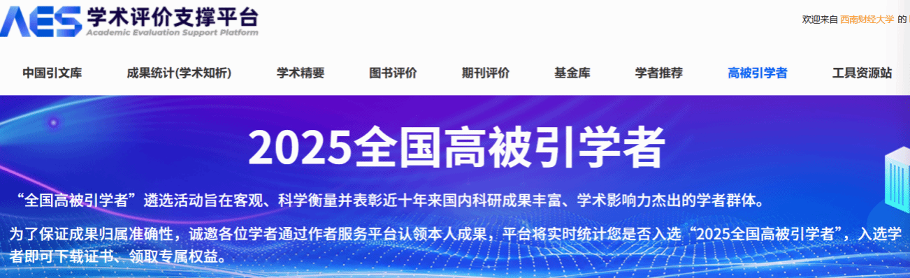 近日,中国知网公布了“2025中国知网高被引学者名单”,该名单基于中国知网收录的国内学术成果,开展学者学术影响力客观评价,旨在客观、科学衡量并表彰近十年来国内科研成果丰富、学术影响力的学者群体。