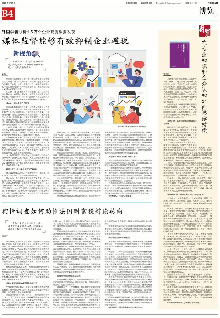 学院张伦伦副教授在《中国税务报》2026年4月1日刊发文章“在专业知识和公众认知之间搭建桥梁”,系统介绍了《国际税收》教材的特色与亮点。以下是文章内容。