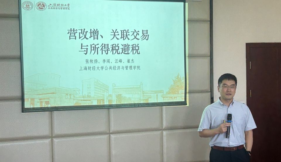 4月18日上午,上海财经大学公共经济与管理学院税收系主任张牧扬副教授以“营改增、关联交易与所得税避税”为主题展开学术分享,我院李建军教授主持。张牧扬副教授聚焦“营改增”改革对企业税负的差异化影响,从打通流转税抵扣链条的制度设计出发,结合企业避税成本视角,深入分析 "营改增" 对关联交易规模及所得税避税行为的双重效应。他认为,相较于原增值税行业,纳入 "营改增" 范围的行业因抵扣链条完善,显著降低了企业开展关联交易的额外成本,提高了关联交易金额。在避税层面,"营改增" 整体降低了企业平均避税程度,但关联交易规模的扩大部分抵消了这一效果。
