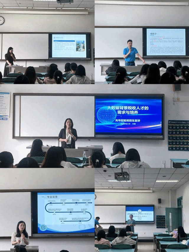 6月18日,财政税务学院在经世楼C403举办了2023级转专业暨数字财税光华实验班的招生宣讲。学院教授委员会主席刘蓉教授、副院长吕敏教授、财政系副主任方圆副教授、税务系主任宋洋副教授、投资系主任杜艳副教授、教学秘书张佩蕾老师出席了此次会议,来自全校各专业的30余同学参加会议。本次会议由学院教学秘书李瑞老师主持。