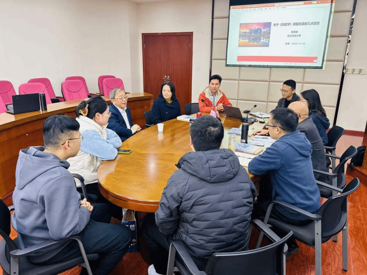 根据学校“十四五”发展规划、“双一流”建设和教师职业发展规划要求,为弘扬教育家精神,持续推进“新财经”战略升级,11月18日,学院邀请浙江财经大学原校长钟晓敏以《财政学》课程建设和财税专业建设为主题开展座谈交流。财政税务学院院长李建军、教授委员会主席刘蓉及财政系所教师参与座谈。
