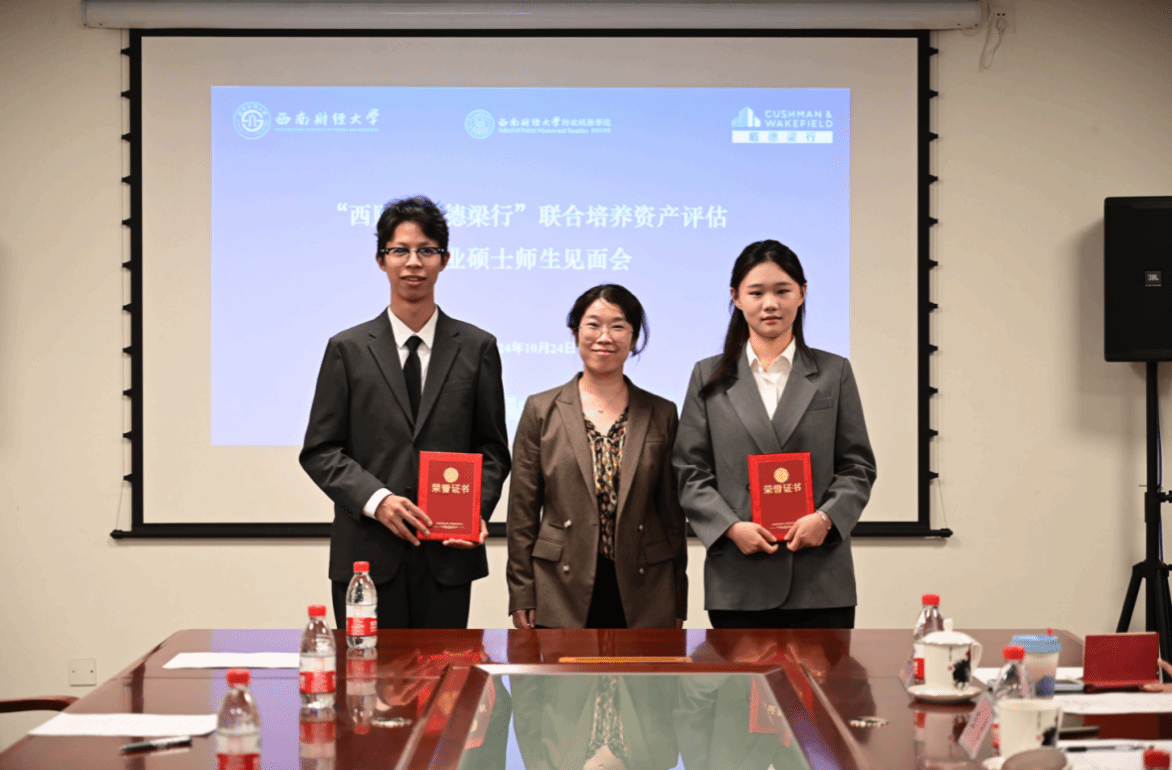 2024年10月24日下午,“西财—戴德梁行”联合培养项目师生见面会暨高质量发展讨论会在西南财经大学光华楼606顺利举行。戴德梁行估价及顾问服务部成都分公司董事林丹,西南财经大学财政税务学院院长李建军、学院投资经济研究所所长王佳、专业硕士教育中心主任张腾飞,投资系教师王霞、研究生教学秘书魏丽霞、专硕辅导员刘萍以及2023、2024级“西财—戴德梁行”班同学出席会议。