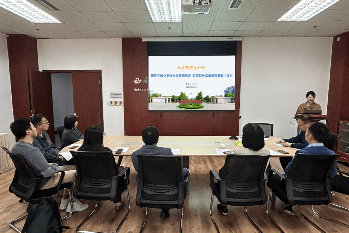 为了深化研究生教育教学改革、提高人才培养质量,11月5日下午,围绕“推进专硕分类分方向精细培养,打造特色高质量税务硕士项目”主题,学院组织2024年教育思想大讨论,税务系及承担税务硕士课程的老师参加了此次会议。