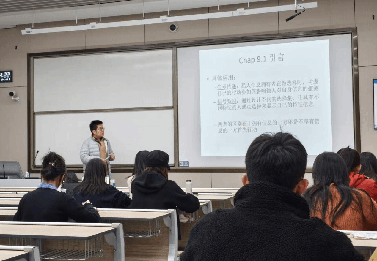 本次课程以“公共经济中的机制设计”为核心主题,系统讲解了信息不对称理论在保险市场监管、社会保障制度优化等领域的体现,深入剖析了道德风险的形成机理与防控路径。赵煦风老师在教学中深入融入习近平经济思想相关论述,结合我国保险领域典型案例,生动阐释了“以人民为中心”的发展思想在公共经济政策设计中的实践逻辑,实现了专业知识传授与价值引领的有机统一,增强研究生对财经领域重大理论与实践问题的把握能力。