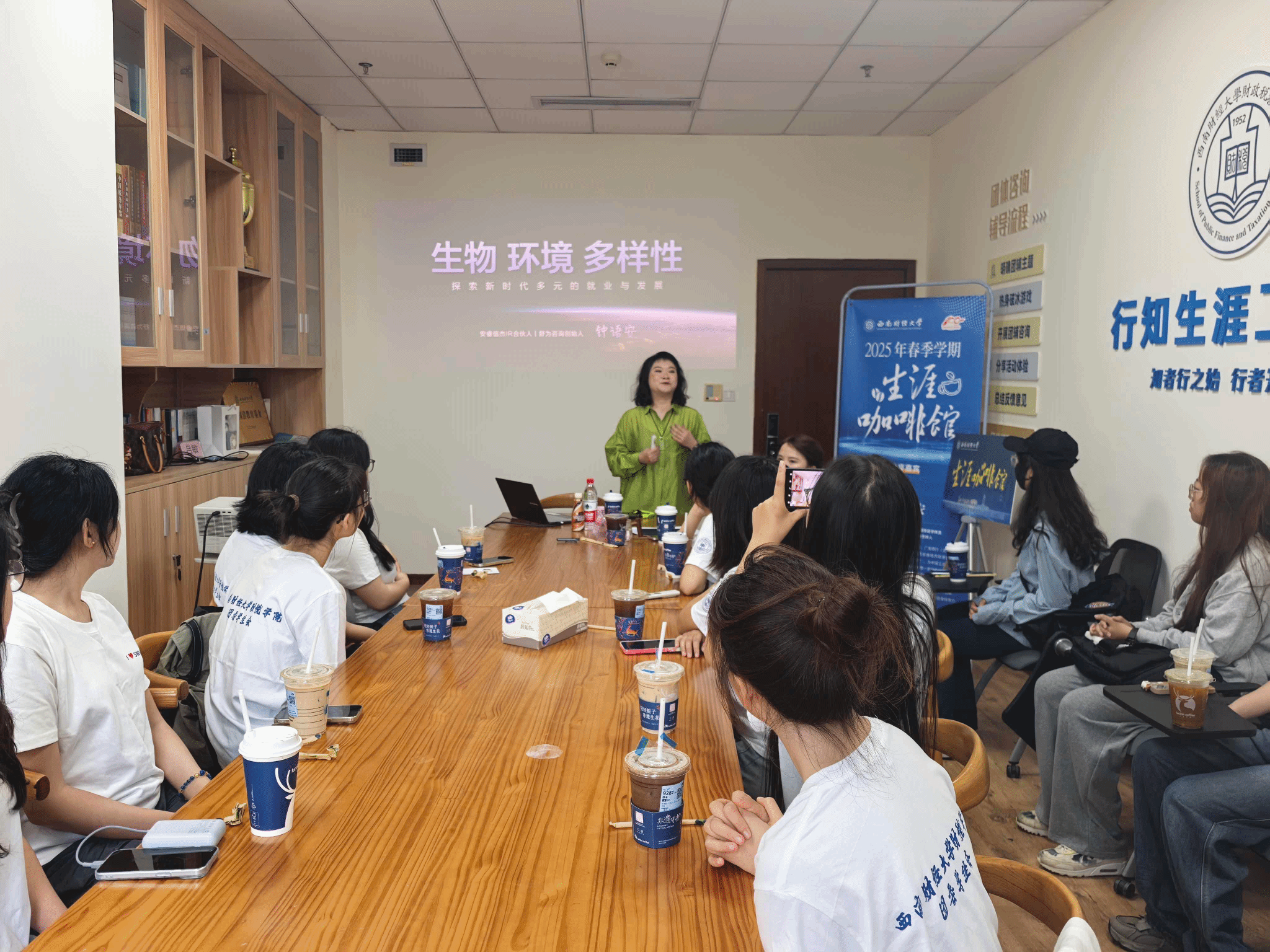5月27日下午,在即将迎来学校百年华诞之际,财税学院特邀2001级财政学杰出校友、安睿信杰投资公司IR合伙人、“忬为”战略咨询公司创始人钟语安女士返校开展主题为《生物、环境、多样性——探索新时代多元的就业与发展》的“生涯咖啡馆校友特别活动”。活动由曾妮老师主持,吕敏副院长出席并讲话。
