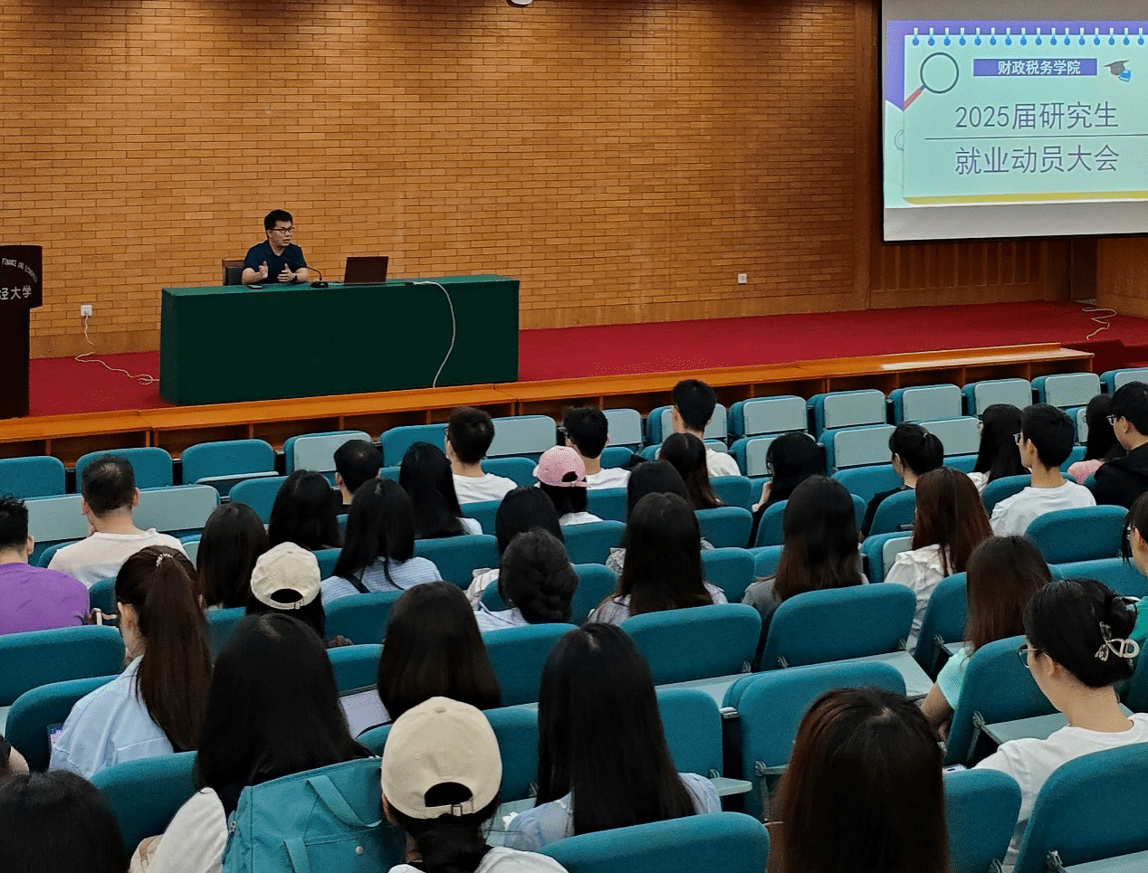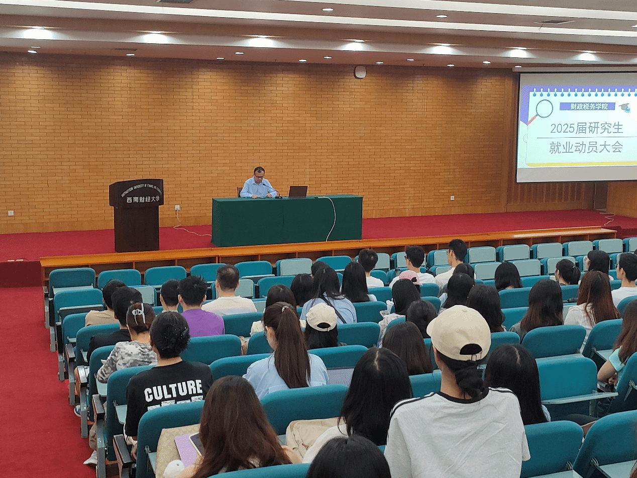放飞青春理想,把握无悔明天。为进一步推动和提升研究生高质量就业,充分调动毕业生就业积极性, 6月14日上午,财政税务学院2025届研究生就业动员大会在光华校区西厅教室举行,党委副书记王隆庆、专硕教育中心主任张腾飞、教学秘书魏丽霞及全体2025届专硕研究生参加了会议。