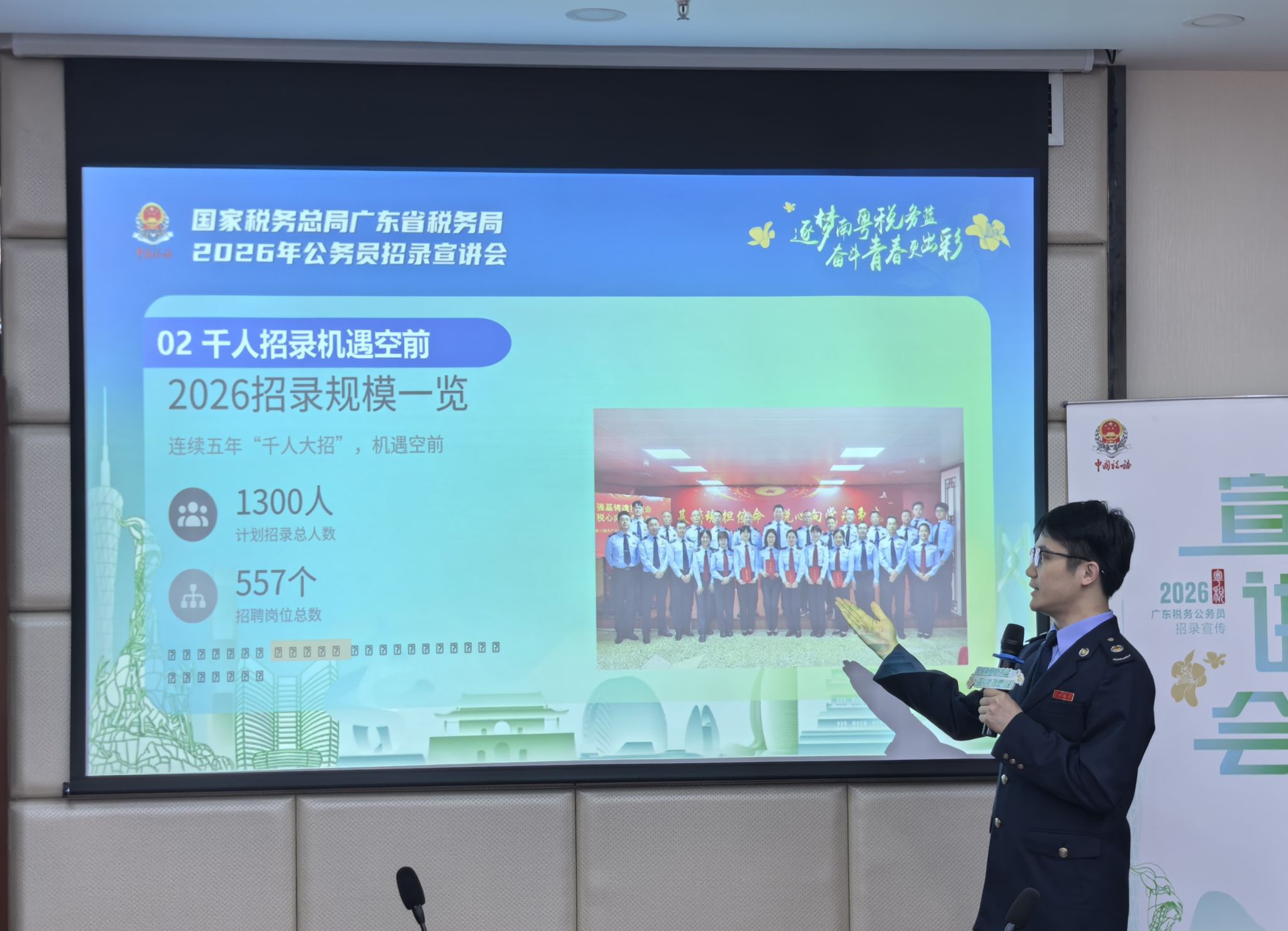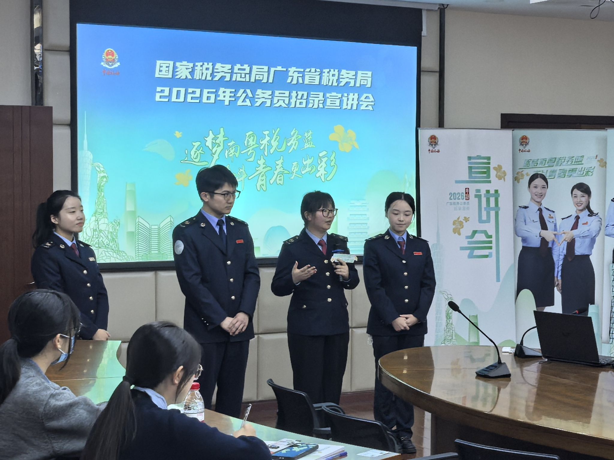 2025年10月21日,国家税务总局广东省税务局携手财政税务学院,于柳林校区格致楼918会议室成功举办2026年公务员招录宣讲会。活动搭建了在校同学与税务部门直接沟通的桥梁,增进了同学们对国家税收工作的系统认知与职业认同,也为同学们未来职业选择提供了有益参考。