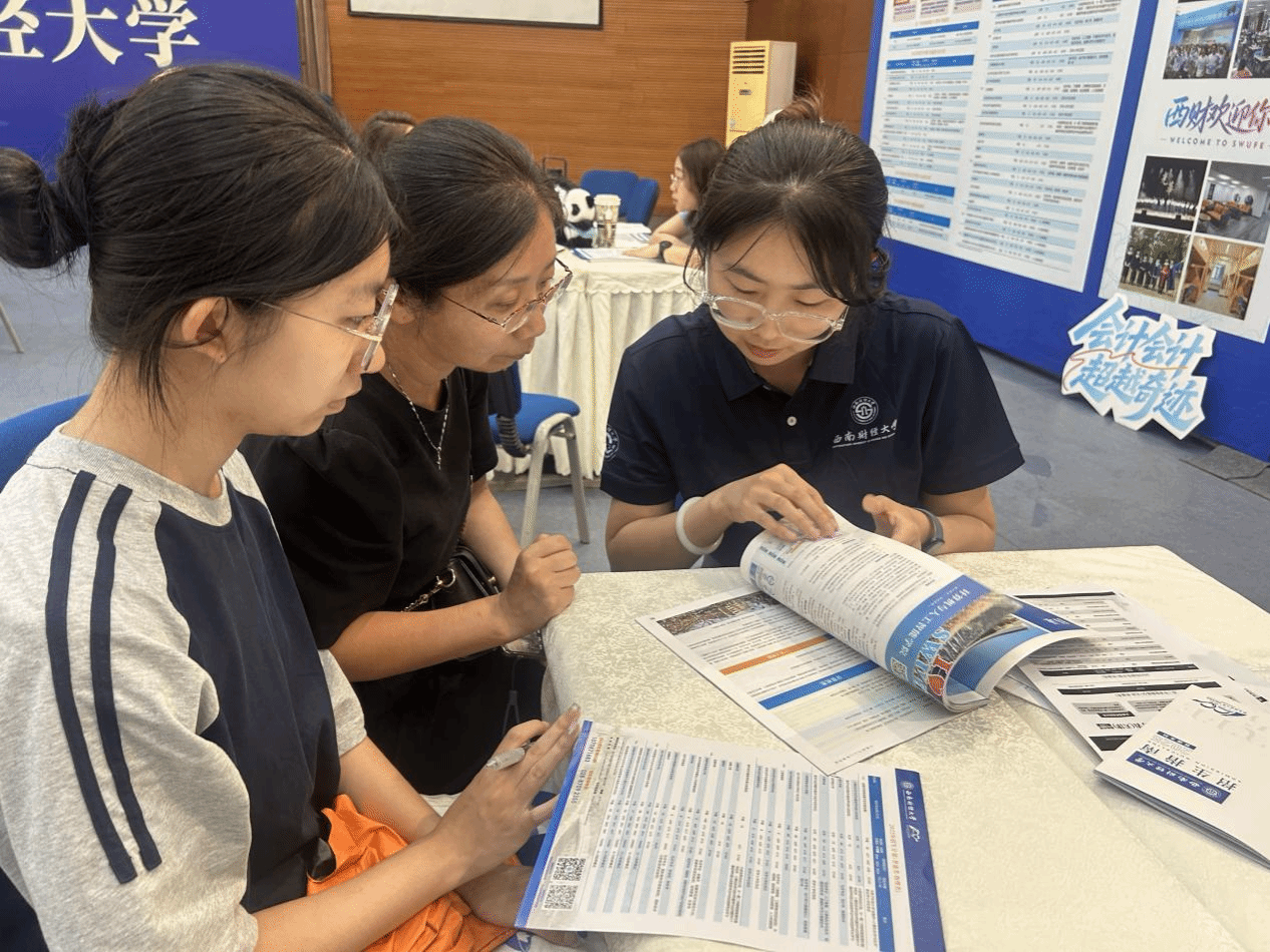 招生宣传人员重点解读了学校各专业的招生政策和优势,对学院财政学、税收学、投资学三大国家级一流专业进行了解读,详细介绍了各专业的课程设置、师资力量以及就业前景等方面的内容。同时,针对考生和家长关心的录取分数线、志愿填报技巧等问题进行了耐心细致的解答。通过面对面的交流,招生宣传人员帮助考生和家长更加全面地了解了学校的专业特色和办学优势,为他们提供了有针对性的建议和指导。