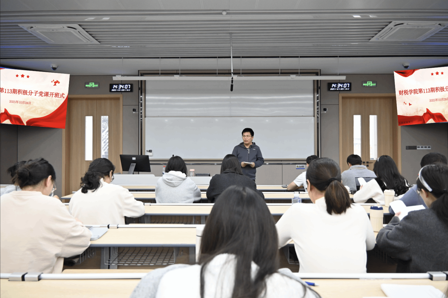 2025年10月21日,财政税务学院第113期入党积极分子开班式在经世楼E204顺利举行。本次党课以“正确认识和了解中国共产党”为主题,财政税务学院党委副书记王隆庆主讲,第113期入党积极分子参加学习。