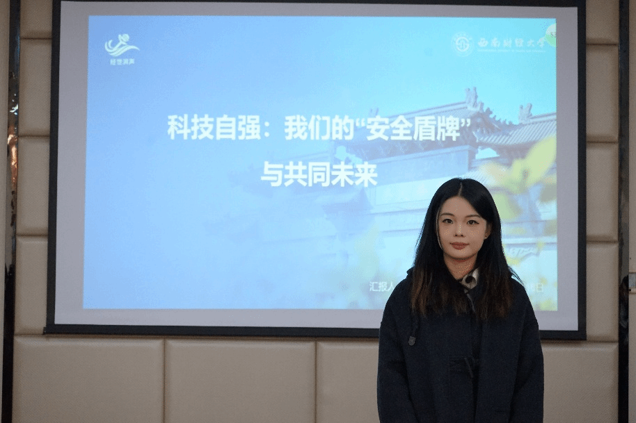 龙嘉雯围绕“科技自强:我们的‘安全盾牌’与共同未来”为主题进行宣讲,她通过趣味的AI识图案例引入,从“全球安全焦虑”到“中国的安全体系和能力现代化”,深入剖析科技自立自强对国家安全的重要意义与青年的使命担当。唐亭则聚焦“十四五”建设成果与“十五五”发展规划进行具体解读。她系统讲解了“十四五”期间我国在各个方面所取得的重大成就,阐述了“十五五”时期经济社会发展的指导思想、重大原则、主要目标、战略任务和重大举措、根本保证,最后结合青年学生实际,强调了贯彻落实会议精神应着重把握的重点。
