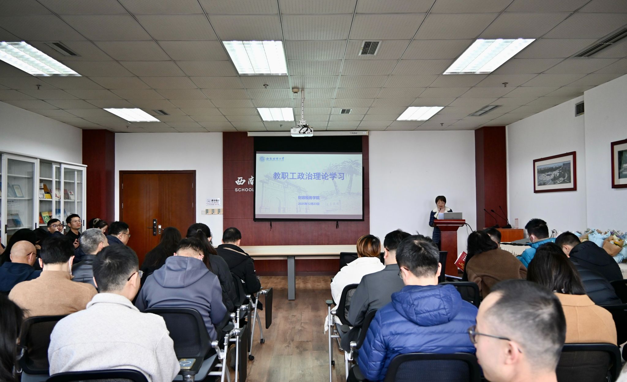 为深入学习贯彻习近平总书记系列重要讲话精神,切实增强教职工法律风险防控意识,12月23日下午,财税学院在格致楼811会议室召开教职工政治理论学习会。学院党委书记吴春力主持会议,全体教职工参会。