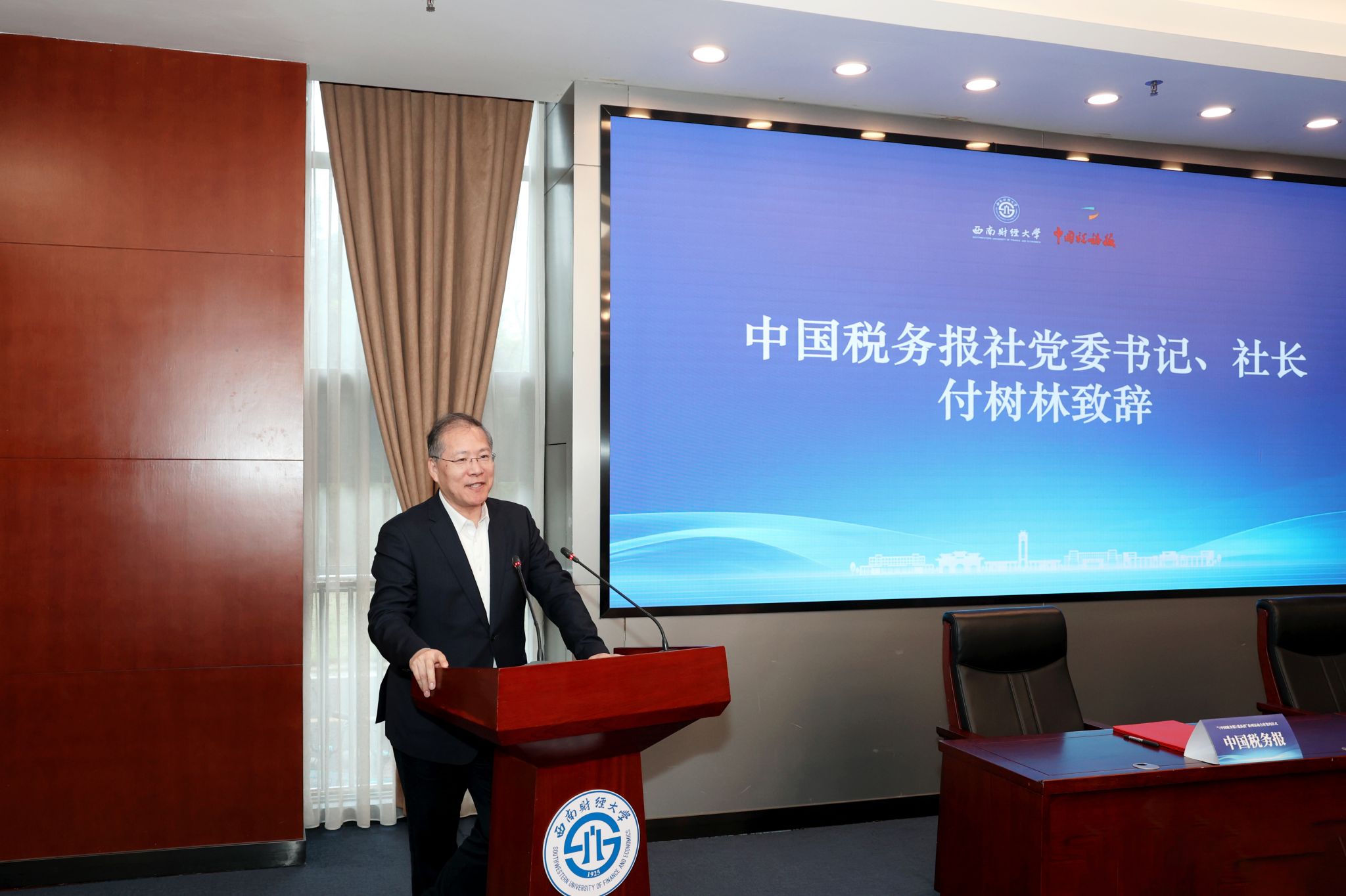 付树林简要介绍了中国税务报社基本情况、建设成果。他表示,中国税务报社将开放优质资源,与西南财大健全合作机制、探索合作新路径,在税务人才培养、科学研究、税法普及宣传等领域深化合作,实现校媒共赢发展,为“十五五”税收改革落地落实提供支撑。