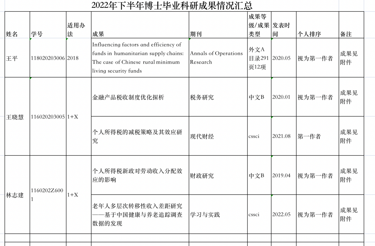 经由学生申请、导师同意,以及财政税务学院学位评定分委员会表决结果,同意王平、王晓慧、林志建等3位博士生将以下科研论文作为博士学位申请条件。现予以公示,公示期为15个工作日,如有异议,请在公示期内提出。 异议电话:87092056 附件:2022年下半年博士毕业科研成果.zip