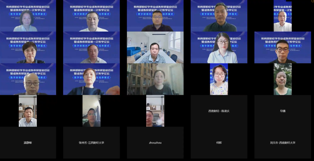On July 2, 2022, to implement the spirit of the document "Notice on the Pilot Construction of Virtual Teaching and Research Office by the Department of Higher Education of the Ministry of Education," the Virtual Teaching and Research Office of Taxation of Southwestern University of Finance and Economics was officially launched. The first teaching forum of the virtual teaching and research office was carried out on the connotation construction and training mode of digital finance and taxation.